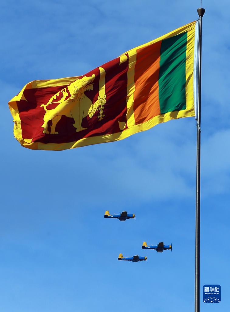 2月4日,在斯里蘭卡首都科倫坡,軍用飛機參加閱兵儀式,慶祝斯里蘭卡獨立75周年。