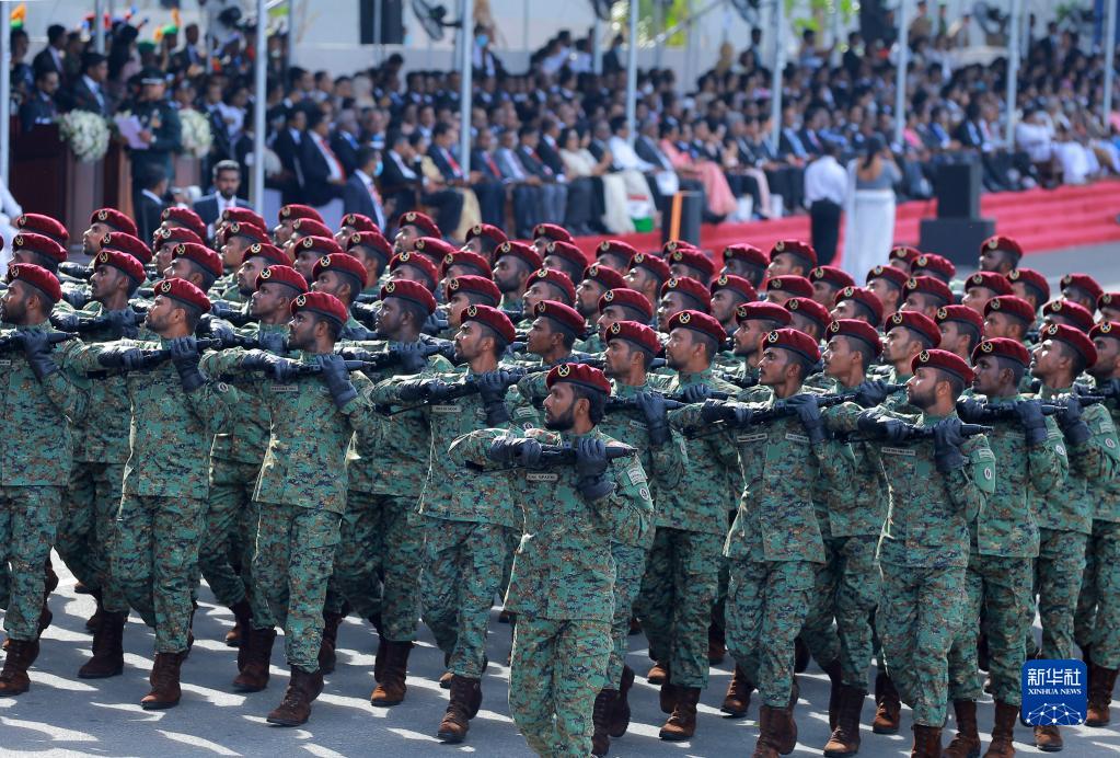 2月4日,斯里蘭卡士兵在首都科倫坡參加閱兵儀式,慶祝斯里蘭卡獨立75周年。