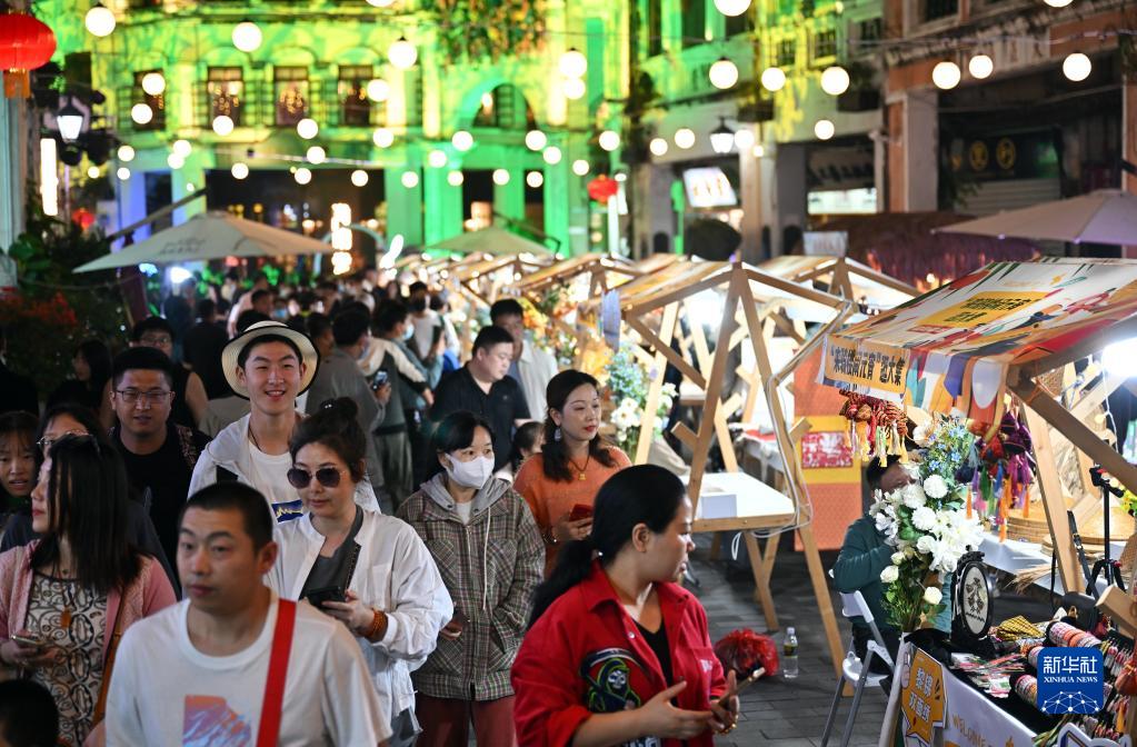 元宵節來臨之際,海口騎樓老街舉辦元宵逛大集活動,外國特色攤位和海南非遺特色文創攤位的攤主各顯身手。中西文化碰撞交流的市集給市民和游客的元宵節帶來別樣體驗。