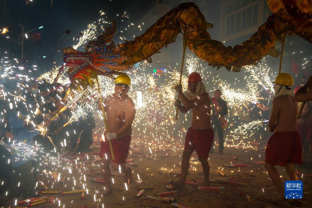 2月4日,人們在貴州省綏陽縣蒲場鎮(zhèn)舞龍。