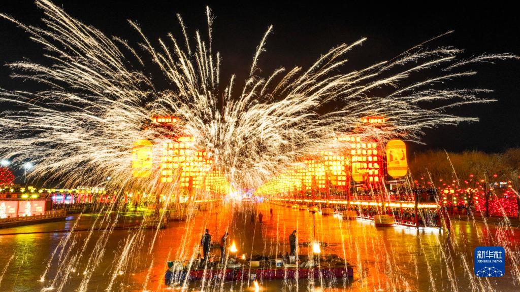 當晚,河北省唐山市豐南區河頭老街景區火樹銀花,耀眼奪目。民間藝人表演的打鐵花,吸引游客駐足觀看。