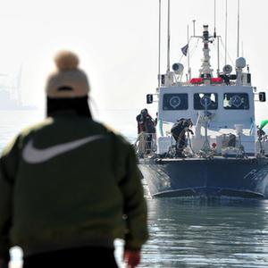 2月5日,在韓國全羅南道木浦市一碼頭,獲救船員被送往醫院。