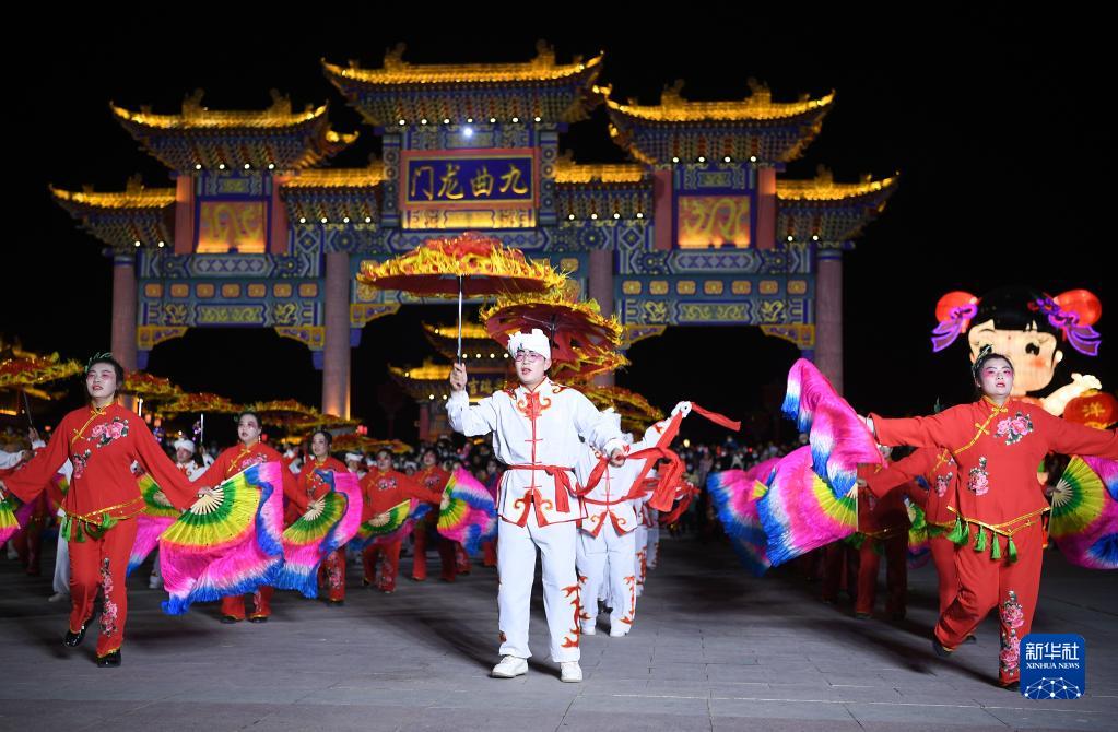 元宵節期間,寧夏鹽池縣開展“龍門祈福游九曲”系列元宵節民俗文化活動,吸引眾多百姓前來參觀體驗,感受濃濃的元宵節氣氛。