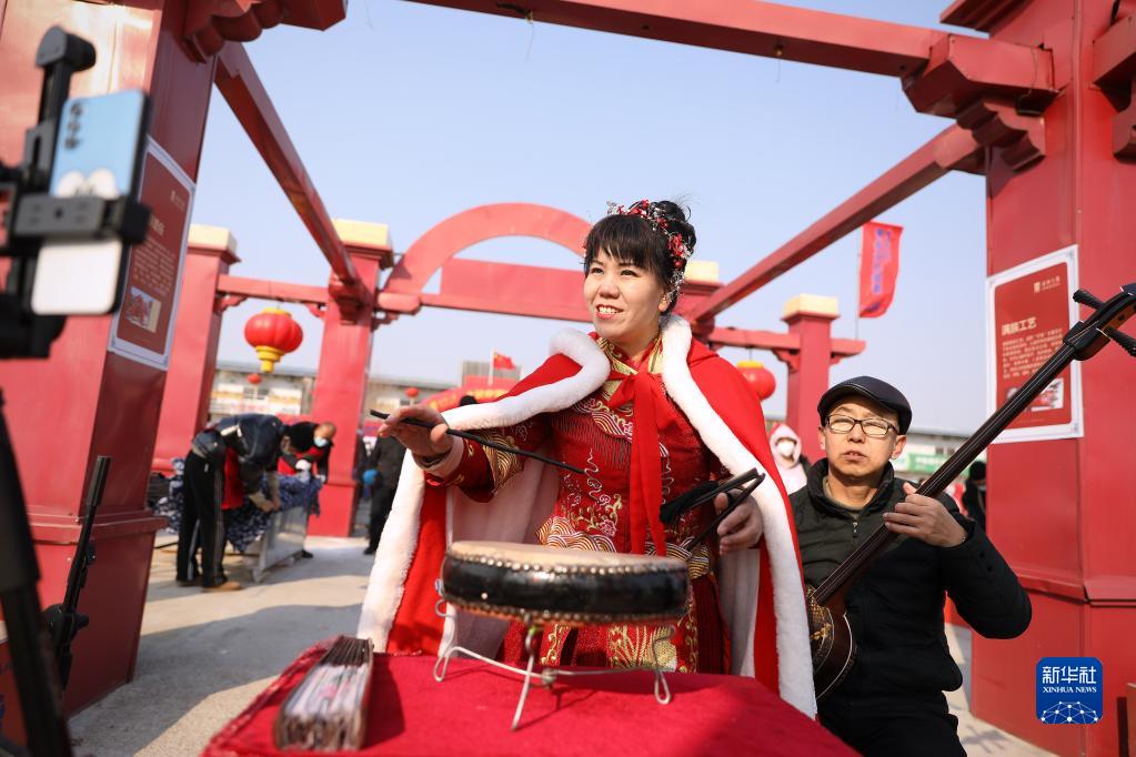 2月5日,演員在有著300余年歷史的遼寧省營口紅旗大集上表演東北大鼓。