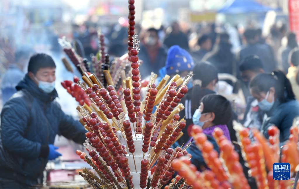 2月5日在河北省任丘市呂公堡鎮(zhèn)后李花村 “糖墩兒節(jié)”上拍攝的各式糖葫蘆。