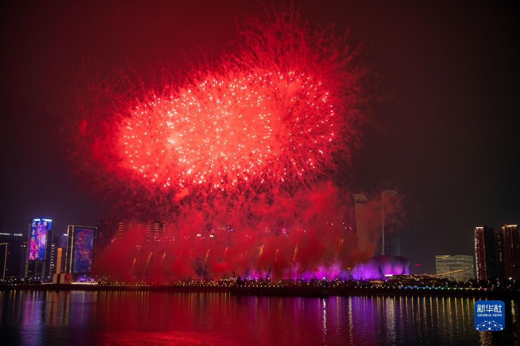 當晚,“迎亞運、慶元宵”煙花燈光秀在浙江杭州舉行。