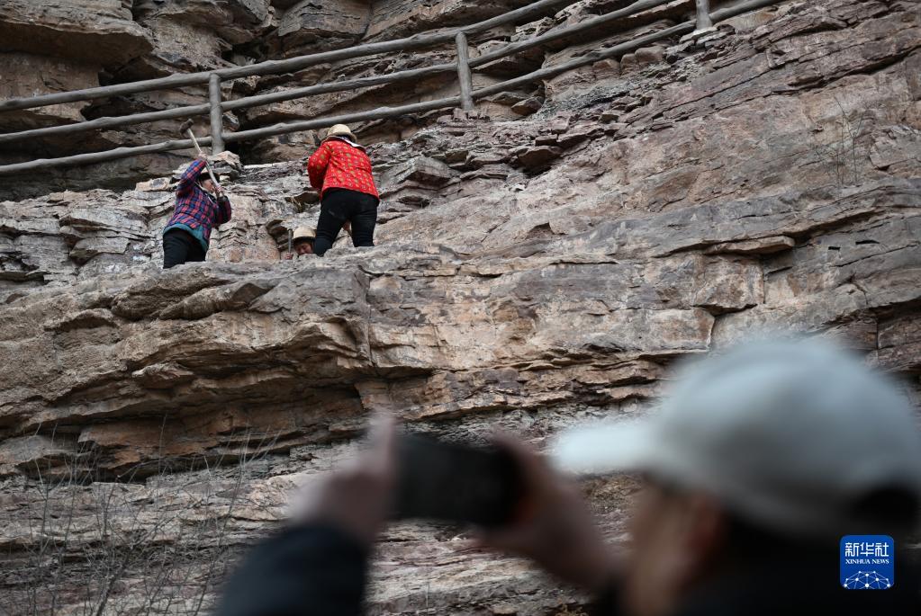 2月5日,游客在紅旗渠景區觀看情景演出。