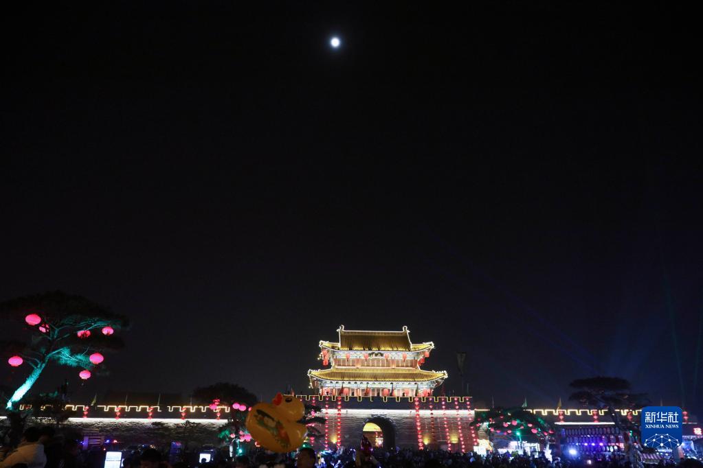 當日是農歷正月十五元宵節,在河南省??h古城里,古色古香的建筑配合璀璨燈光,吸引眾多游客沉醉其中,度過難忘的元宵夜。