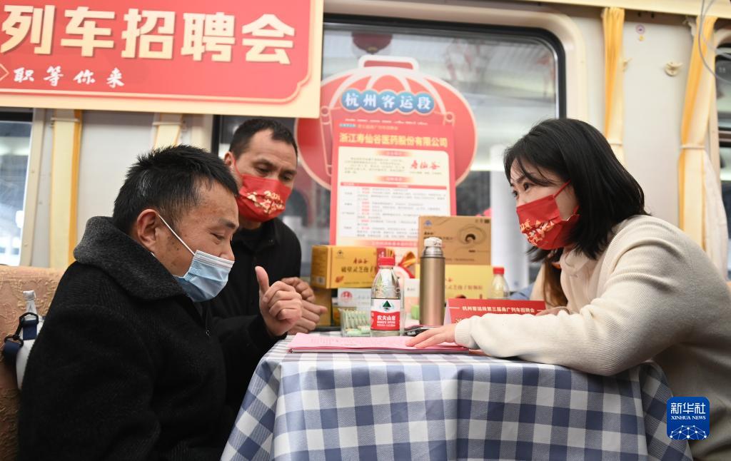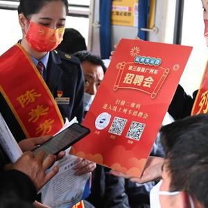 當日,中國鐵路上海局集團有限公司杭州客運段第三屆列車招聘會在由廣州開往寧波的K210次列車上舉行,來自浙江的10家企業代表受邀來到列車上,與旅客面對面,為旅客提供暖心的就業服務。