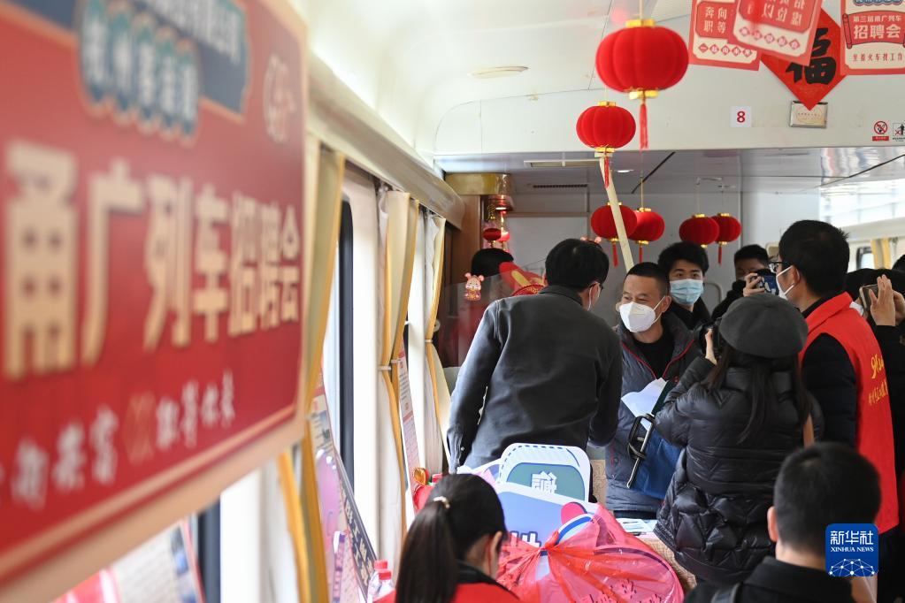 當日,中國鐵路上海局集團有限公司杭州客運段第三屆列車招聘會在由廣州開往寧波的K210次列車上舉行,來自浙江的10家企業代表受邀來到列車上,與旅客面對面,為旅客提供暖心的就業服務。