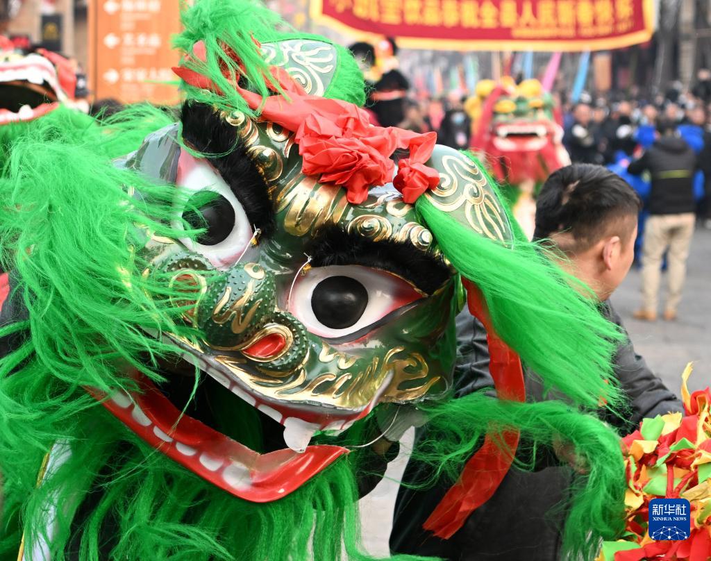 當日是農(nóng)歷正月十六,在河南省浚縣舉行的正月古廟會上,幾十支社火團隊輪番表演,踩高蹺、扭秧歌、耍獅子,鑼鼓喧天,熱鬧非凡,形成一道富有特色的中原文化景觀。河南省浚縣的正月古廟會已有1600多年歷史,有“華北第一廟會”之稱,被譽為民俗文化的“活化石”,是中國民間文化保護工程項目、國家級非物質(zhì)文化遺產(chǎn)。