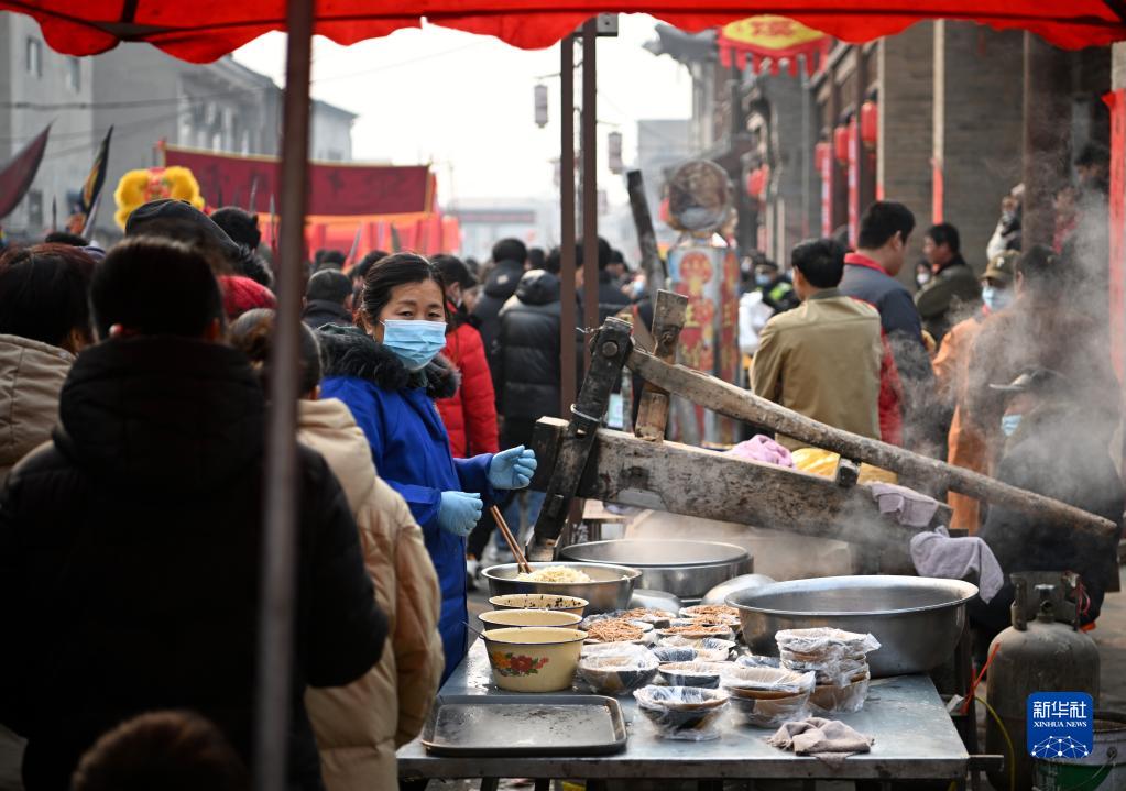 2月6日,攤販在廟會上準(zhǔn)備小吃。