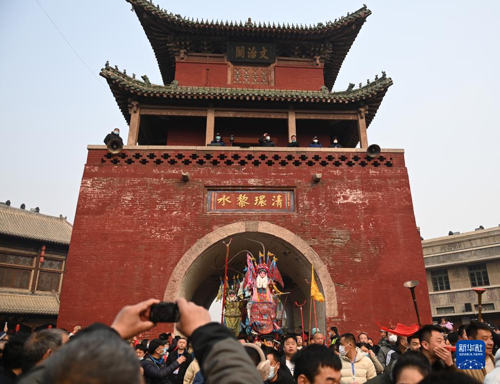 當日是農歷正月十六,在河南省浚縣舉行的正月古廟會上,幾十支社火團隊輪番表演,踩高蹺、扭秧歌、耍獅子,鑼鼓喧天,熱鬧非凡,形成一道富有特色的中原文化景觀。河南省浚縣的正月古廟會已有1600多年歷史,有“華北第一廟會”之稱,被譽為民俗文化的“活化石”,是中國民間文化保護工程項目、國家級非物質文化遺產。