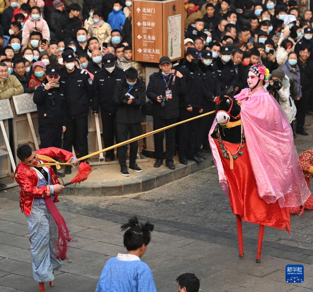 當日是農歷正月十六,在河南省浚縣舉行的正月古廟會上,幾十支社火團隊輪番表演,踩高蹺、扭秧歌、耍獅子,鑼鼓喧天,熱鬧非凡,形成一道富有特色的中原文化景觀。河南省浚縣的正月古廟會已有1600多年歷史,有“華北第一廟會”之稱,被譽為民俗文化的“活化石”,是中國民間文化保護工程項目、國家級非物質文化遺產。