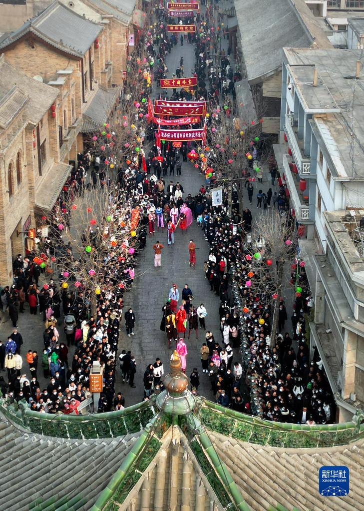 當日是農歷正月十六,在河南省浚縣舉行的正月古廟會上,幾十支社火團隊輪番表演,踩高蹺、扭秧歌、耍獅子,鑼鼓喧天,熱鬧非凡,形成一道富有特色的中原文化景觀。河南省浚縣的正月古廟會已有1600多年歷史,有“華北第一廟會”之稱,被譽為民俗文化的“活化石”,是中國民間文化保護工程項目、國家級非物質文化遺產。