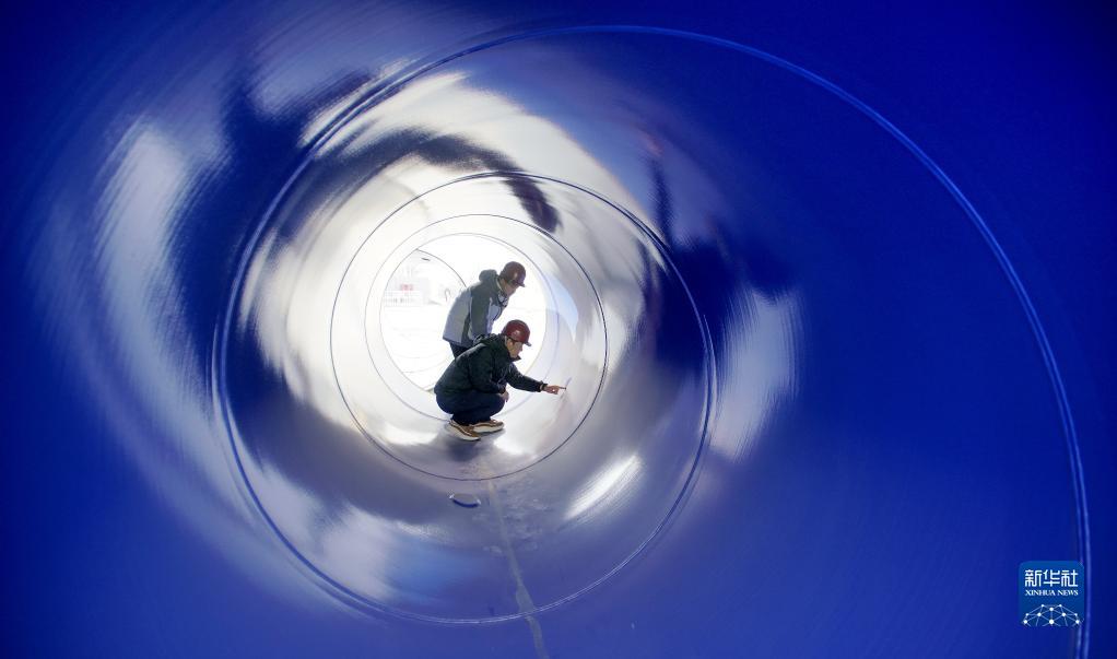 2月6日,技術人員在檢查南水北調配套工程北京大興支線機場連接線的管道質量。