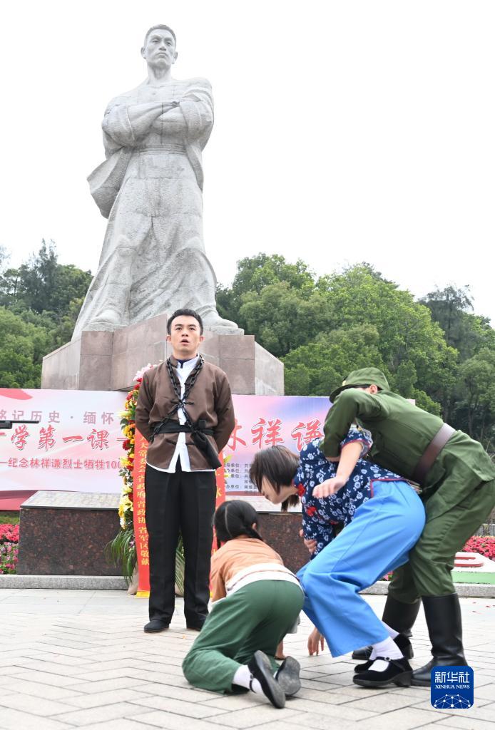2月7日,福州市閩侯縣青口中心小學少先隊員和老師在“開學第一課——致敬林祥謙”活動現場表演情景劇《林祥謙》。當日是林祥謙烈士犧牲100周年,紀念活動在福建省福州市閩侯縣祥謙鎮的“祥謙陵園”舉行。