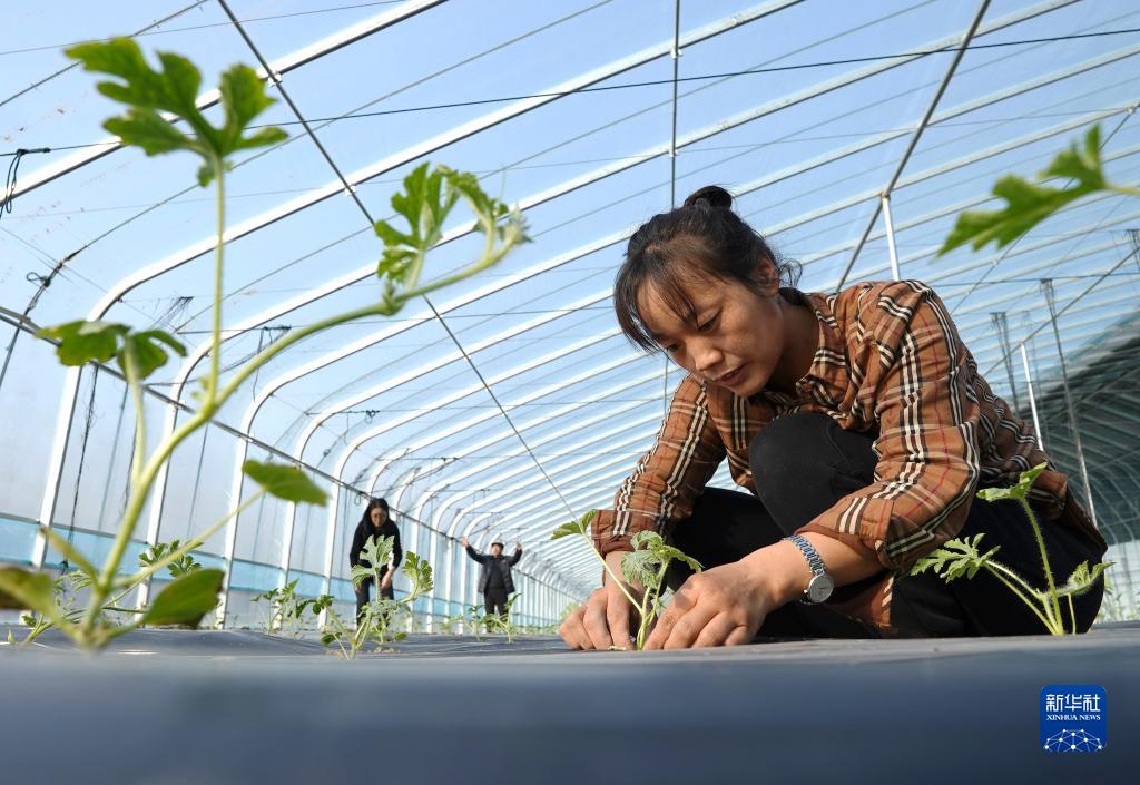 初春時節,河北唐山灤州市的農民開始播種、嫁接果蔬秧苗,田間地頭一派繁忙。