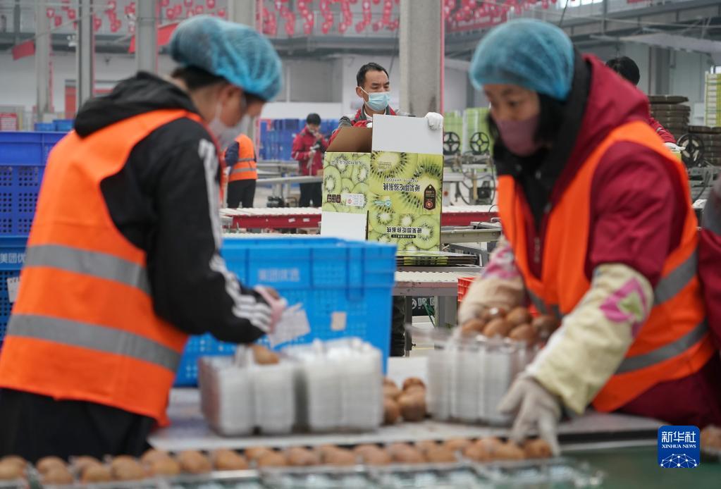 2月6日,在位于武功縣的京東物流陜西智能供應鏈中心,工作人員在包裝線上工作。