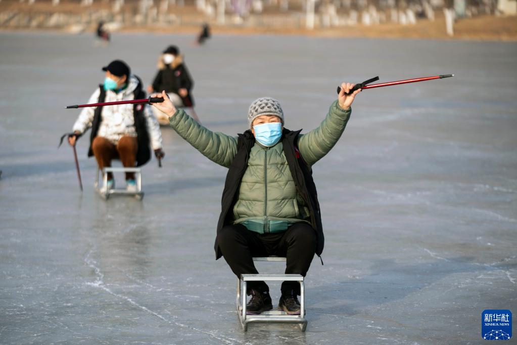 2月7日,人們在活動現(xiàn)場體驗冰車項目。