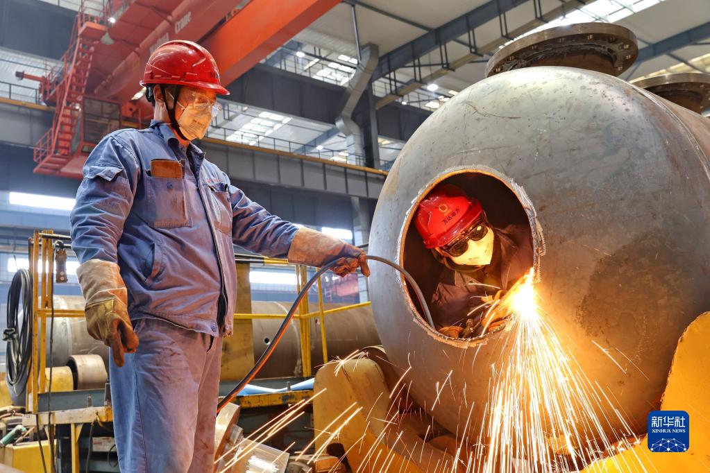 2月6日,江蘇南通萬達(dá)能源動(dòng)力科技有限公司的工人在生產(chǎn)車間趕制出口節(jié)能環(huán)保鍋爐訂單產(chǎn)品。