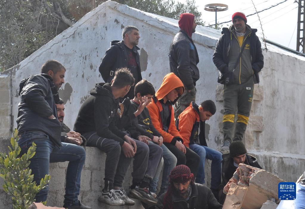 2月7日,人們聚集在敘利亞拉塔基亞省的一處地震廢墟。