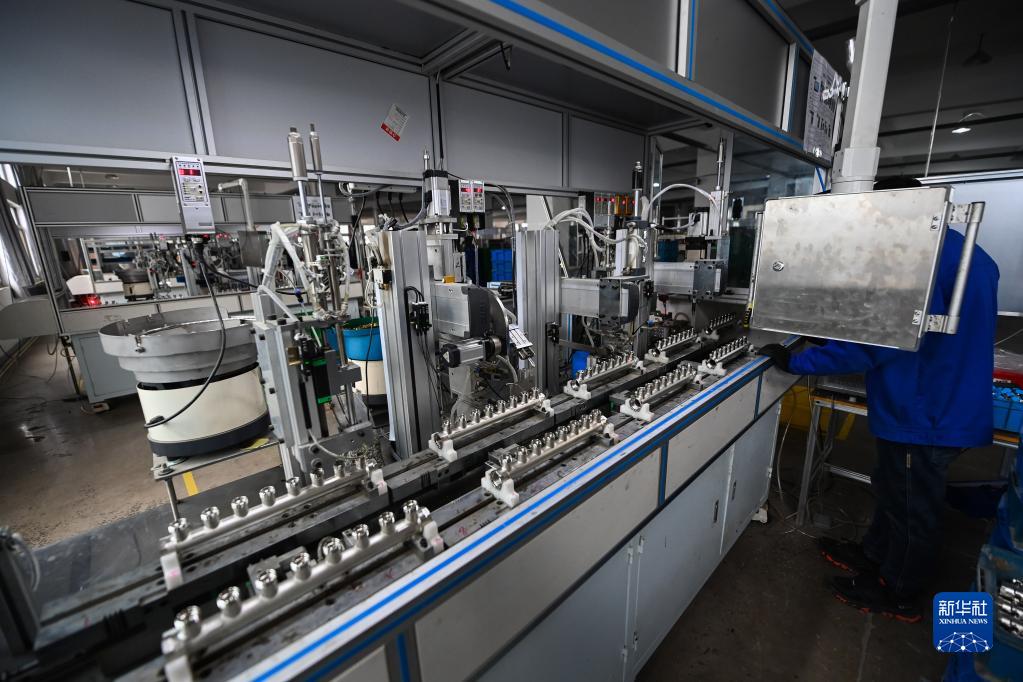 2月7日,在店口鎮的浙江潔利達暖通科技有限公司車間內,自動化設備在生產水暖零部件。