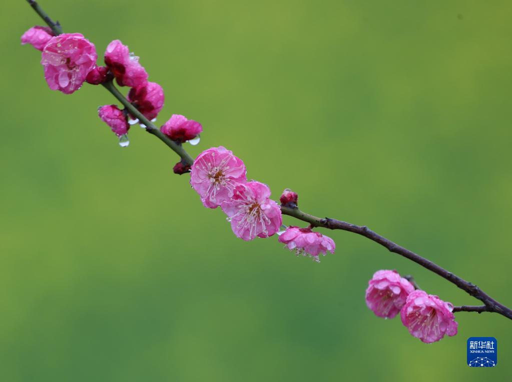 2月7日在湖南省衡陽市衡陽縣西渡鎮梅花村拍攝的春雨后的梅花。