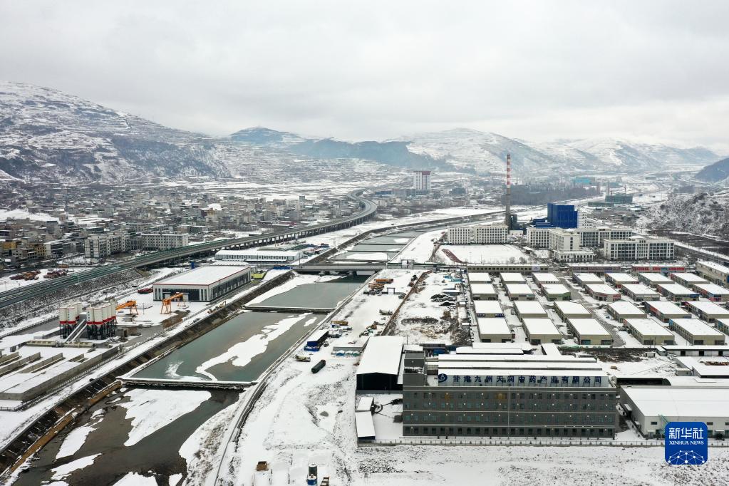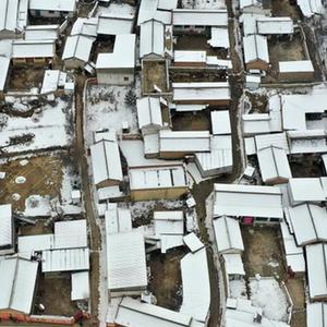 這是2月8日在甘肅省定西市岷縣境內拍攝的春日雪景(無人機照片)。