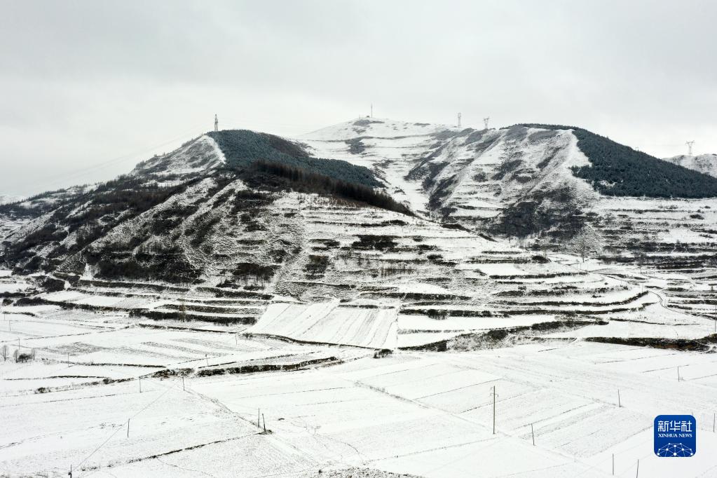 這是2月8日在甘肅省定西市岷縣境內(nèi)拍攝的春日雪景(無(wú)人機(jī)照片)。