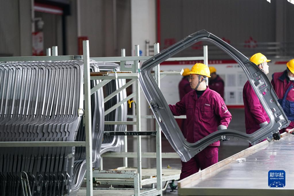 2月8日,工人在江淮汽車新港基地輕卡生產線上忙碌。