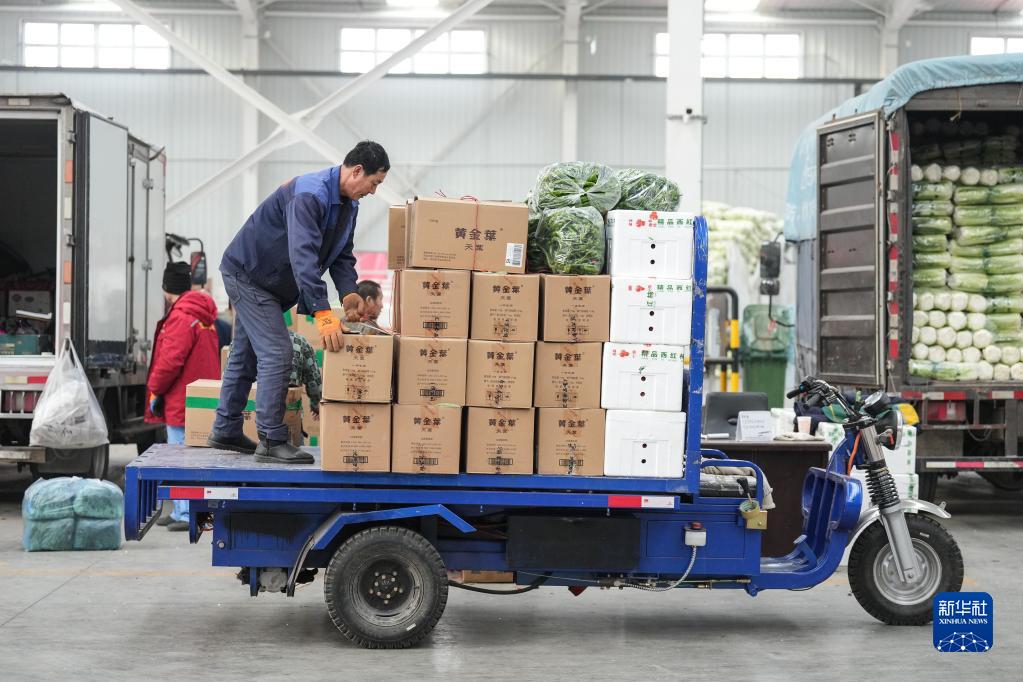 位于遼寧省盤錦市的東北新發地農產品供應鏈中心是東北地區具有一定規模的一級農產品批發市場,被當地稱為東北的“菜籃子”。近期,新發地農產品供應鏈中心一派繁忙,市場內供銷兩旺。