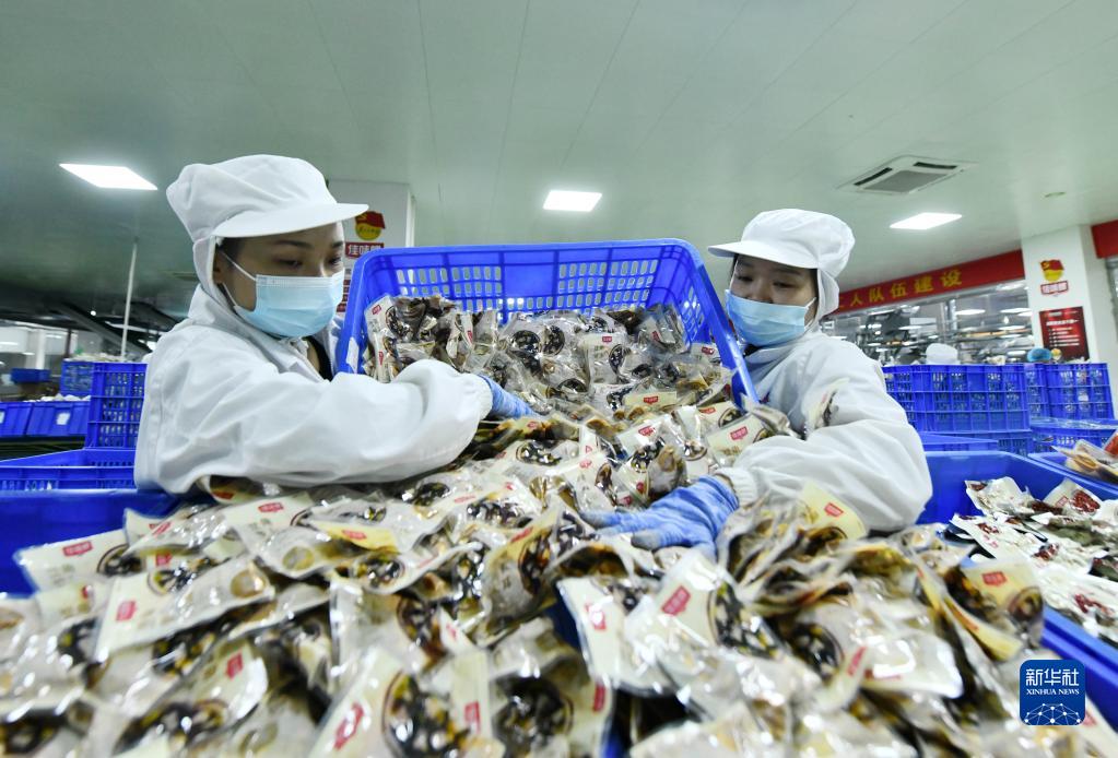 2月8日,工人在柳州螺螄粉生產集聚區一生產車間包裝產品。