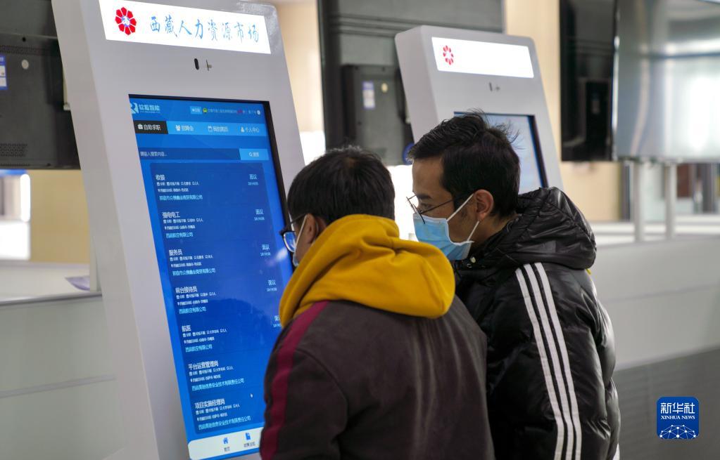 2月8日,求職者在西藏2023年“春風行動”暨就業援助月招聘活動現場尋找崗位。