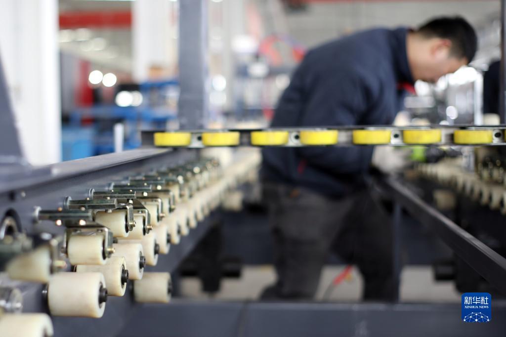 2月9日,在滄州市東光縣一紙箱機(jī)械公司,工作人員在組裝全自動粘箱設(shè)備。