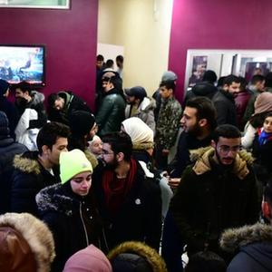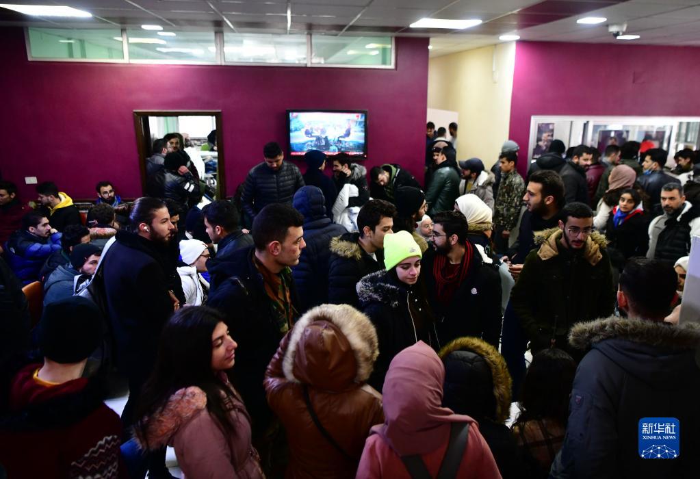 2月8日,民眾在敘利亞首都大馬士革一處獻血中心等待獻血。