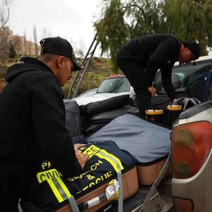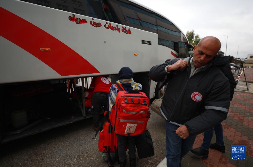 2月9日,在約旦河西岸城市拉姆安拉,巴勒斯坦救援隊(duì)隊(duì)員準(zhǔn)備啟程奔赴震區(qū)。