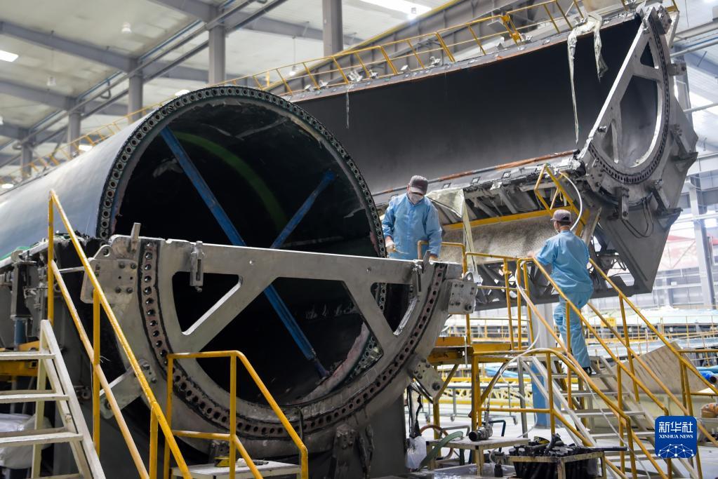 2月9日,工人在株洲時代新材料科技股份有限公司蒙西分公司風力發電葉片生產車間內作業。