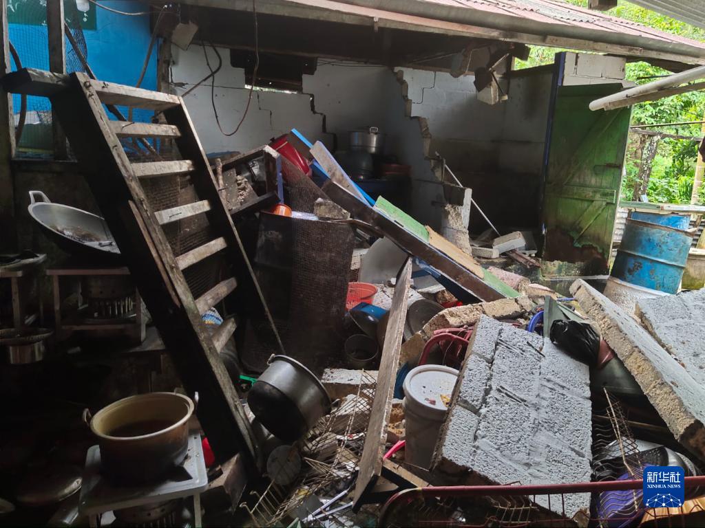 這是2月9日在印度尼西亞查亞普拉拍攝的在地震中損毀的房屋。