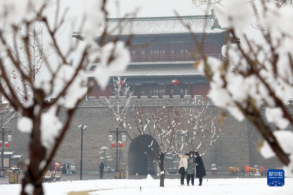 2月9日,游客在石家莊正定古城內(nèi)游玩賞雪。
