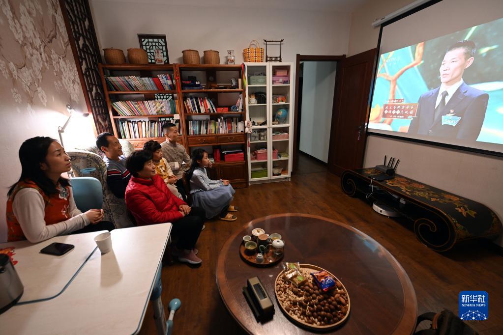 馬保利與家人一起收看《2023中國詩詞大會》決賽(2月3日攝)。