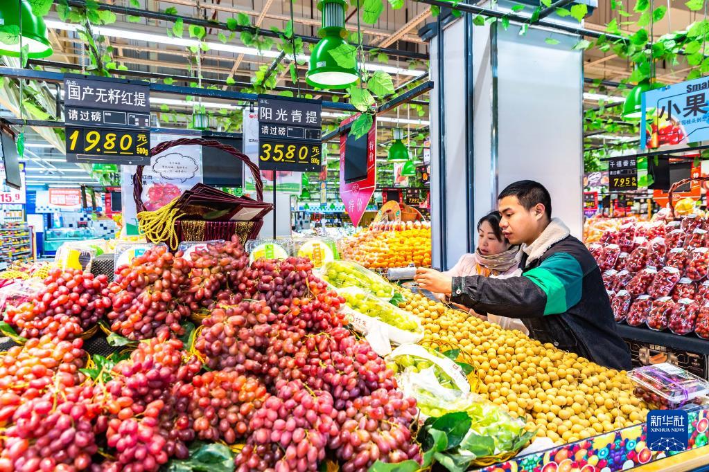 2月10日,消費者在貴州省安順市西秀區(qū)一家超市選購水果。