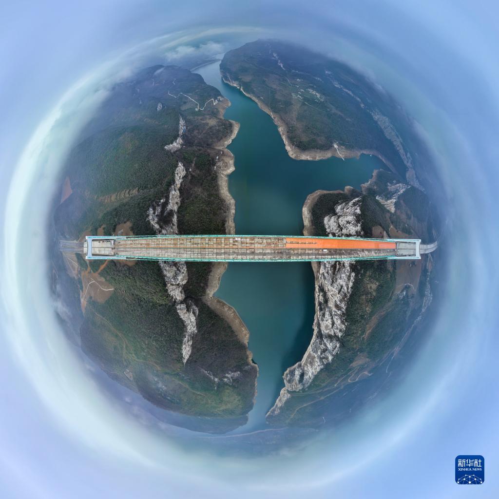 2月3日拍攝的貴州金烽烏江大橋(無人機照片)。