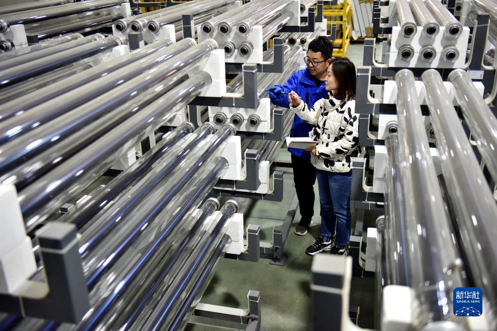 河北威縣高新區(qū)管委會(huì)工作人員(右)在一家新能源科技有限公司實(shí)地走訪(2月3日攝)。