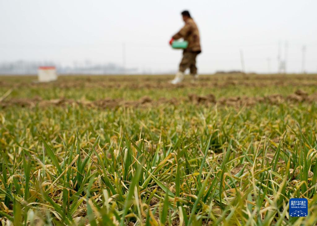 2月8日,安陽市湯陰縣古賢鎮(zhèn)北韓莊村的村民在麥田施肥。