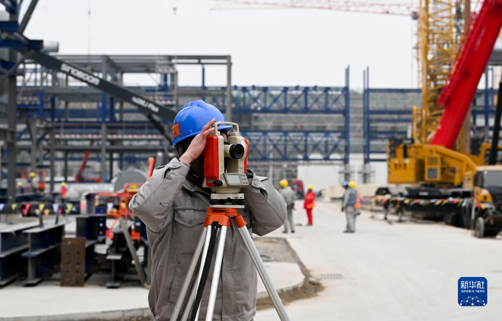 2月9日,建設(shè)者在天津南港乙烯項(xiàng)目建設(shè)施工現(xiàn)場進(jìn)行測(cè)量。
