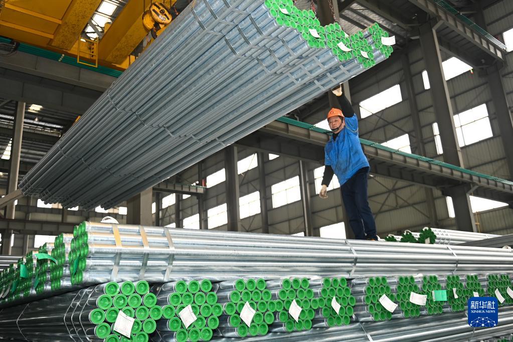 2月10日,工人在位于浙江湖州吳興區八里店鎮的金洲管道科技股份有限公司裝貨車間作業。