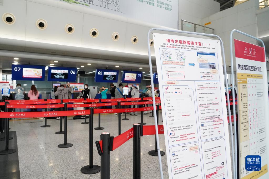 2月10日,在成都雙流國(guó)際機(jī)場(chǎng)T1航站樓,出境旅客在辦理登機(jī)手續(xù)。