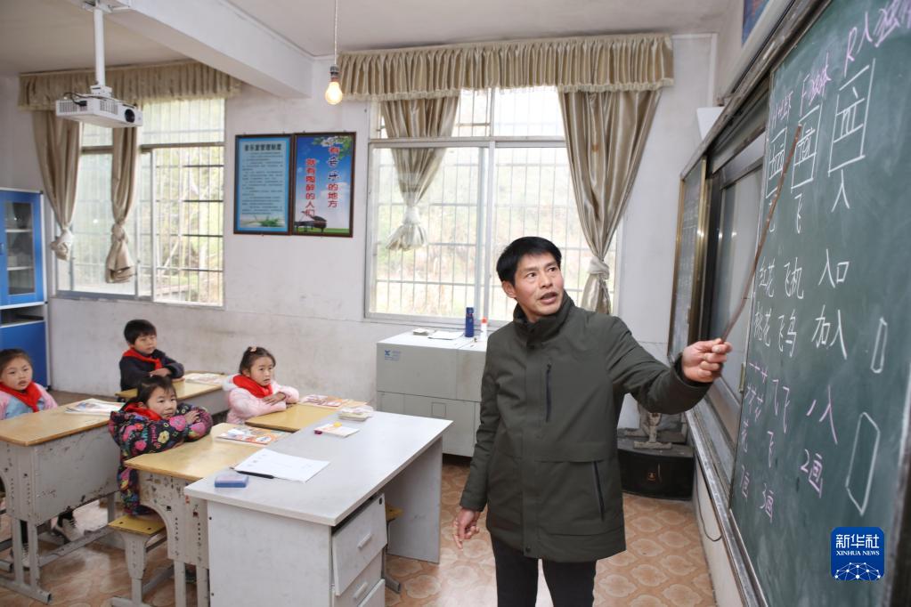 在楠木鄉(xiāng)官溪小學(xué),賴(lài)小田給孩子們上語(yǔ)文課(2月7日攝)。