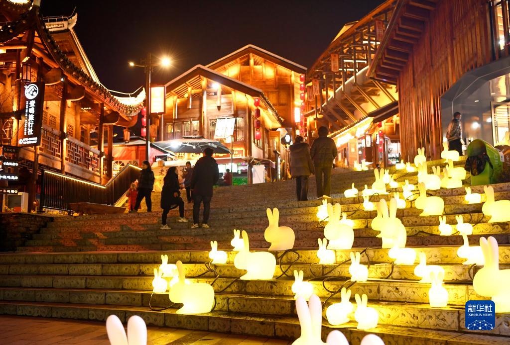 2月9日,游客在宣恩縣興隆老街賞景游玩。